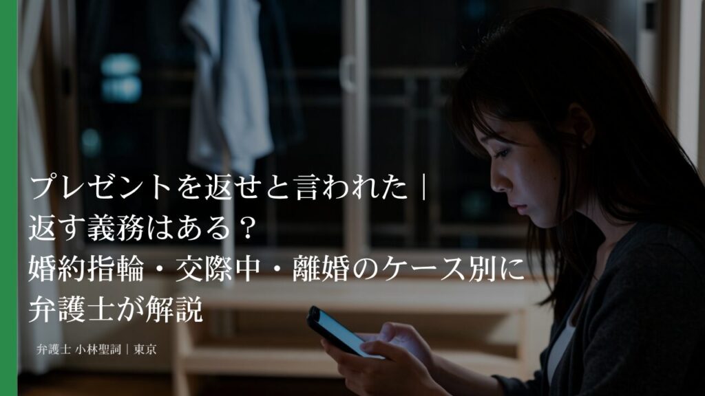 交際相手や元交際相手から「プレゼントを返せ」と言われても、 返す法的義務は原則ありません。贈与契約の成立・婚約指輪など 例外となるケース・相手への対処法を弁護士がわかりやすく解説します。 -