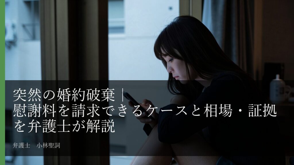 婚約破棄を言い渡されたとき、慰謝料は請求できるのか。請求できるケース・できないケース、相場、必要な証拠を解説。弁護士かつ夫婦カウンセラーが法律と心理の両面からお伝えします。初回相談無料。